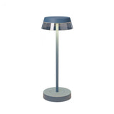 Lampada da tavolo ricaricabile per interni ed esterni equipaggiata con LED SMD, interruttore ON/OFF, dimmer da 100% - 5%, con memoria dell’intensità luminosa e temperatura colore, possibilità di cambiare la temperatura colore da 2700K a 3000K. Dotata di caricatore a contatto completo di 1,5m di cavo USB e adattatore. Tempo di ricarica completa 4,5 ore, durata di funzionamento al massimo carico (a luce massima) 7,5 ore. Corpo in pressofusione di alluminio verniciato in 6 colori.