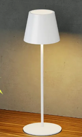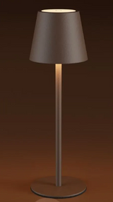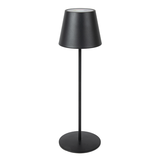 Lampada da tavolo ricaricabile per interni ed esterni equipaggiata con LED SMD, interruttore ON/OFF, dimmer da 100% - 5%, con memoria dell’intensità luminosa e temperatura colore, possibilità di cambiare la temperatura colore da 3000K a 5000K. H. 35 cm. Dotata di batteria e cavo USB. Tempo di ricarica completa 4,5 ore, durata di funzionamento 7 ore. Corpo in pressofusione di alluminio verniciato in 3 colori.